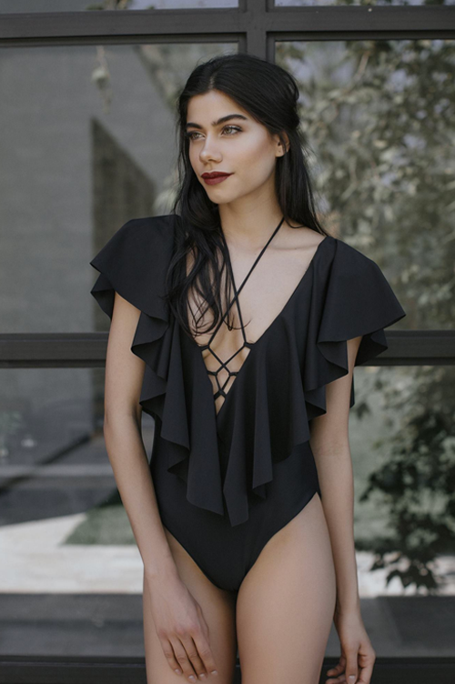 Traje de baño con olanes y escote - María